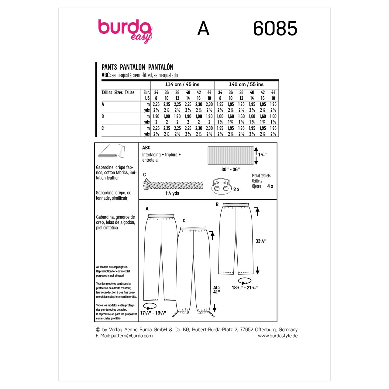Straight Leg Pants in Burda Misses' (6085)
