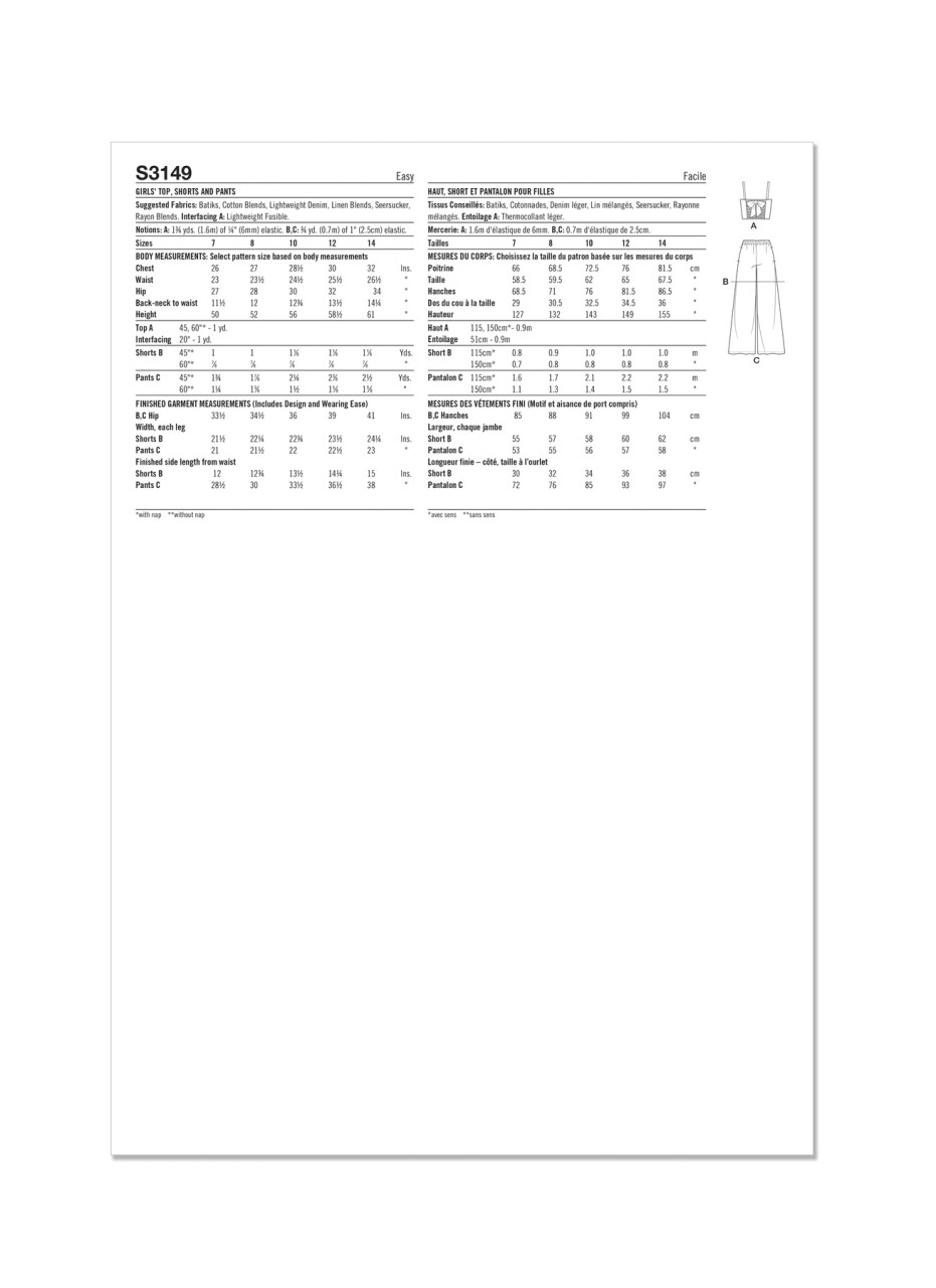 Sleeveless top has thin straps and gathers at back with bow detail. Pull-on shorts and pants have elastic waist and side seam pockets.