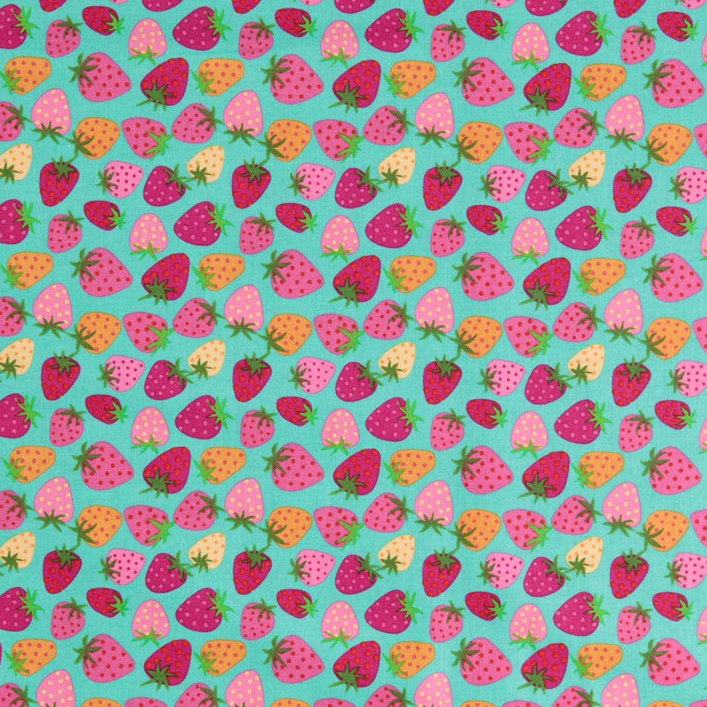 Calico Cowgirls: Strawberries on Aqua - 100% Cotton