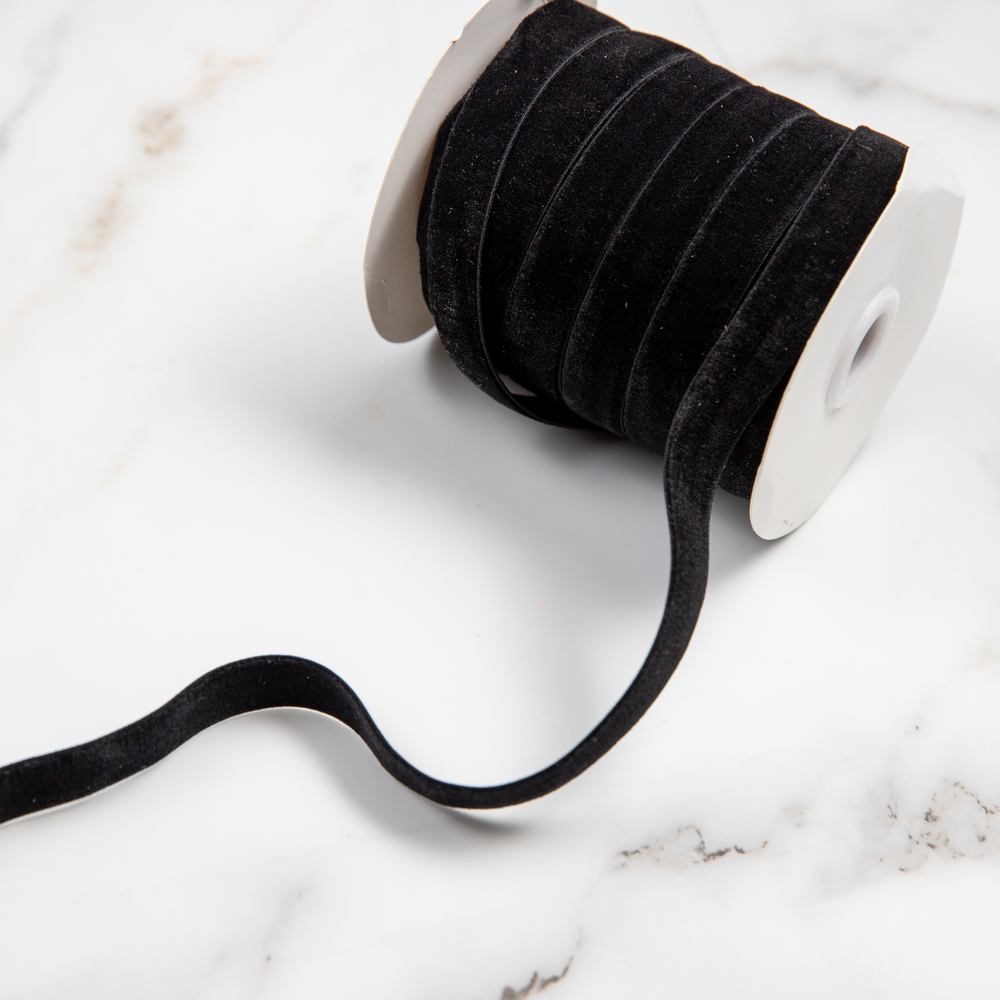 Stretch Black Velvet Ribbon (16mm) - Per Metre