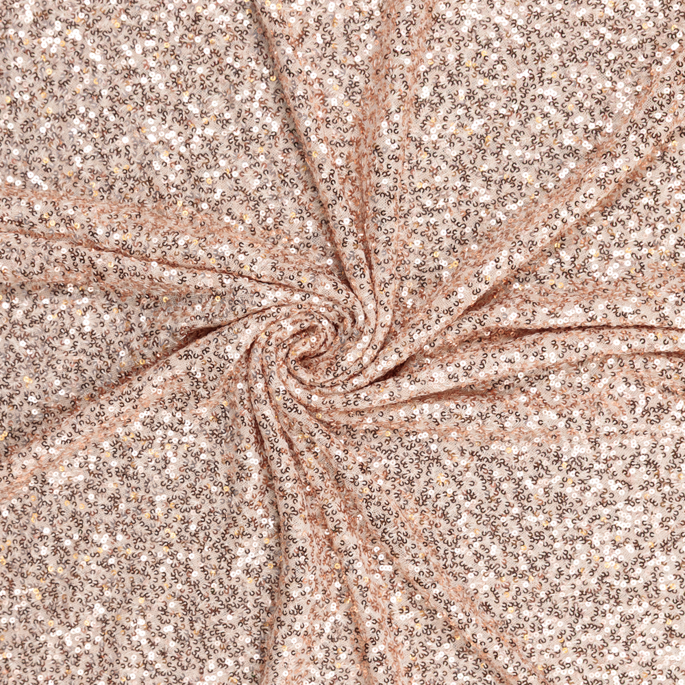 Glow up with this Stretch Mini Sequin in Rose Gold, where tiny flip sequins dance across a soft polyester net in the prettiest pink-rose gold shimmer. Surprisingly gentle for sequins, it won’t snag your hair or scratch your skin, thanks to its smooth, lightweight construction. With four-way stretch and a beautiful drape, it’s your go-to for tops, dresses, bridal gowns, and any special occasion that calls for sparkle and comfort. Depending on your design, a stretch lining might be just the finishing touch to keep you comfy all night long.