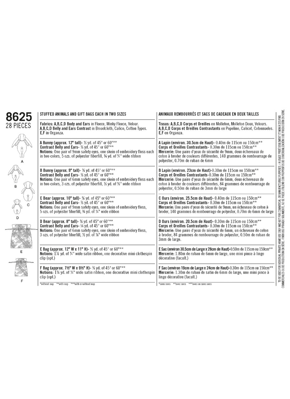 Stuffed Animals & Gift Bags in Simplicity (S8625)