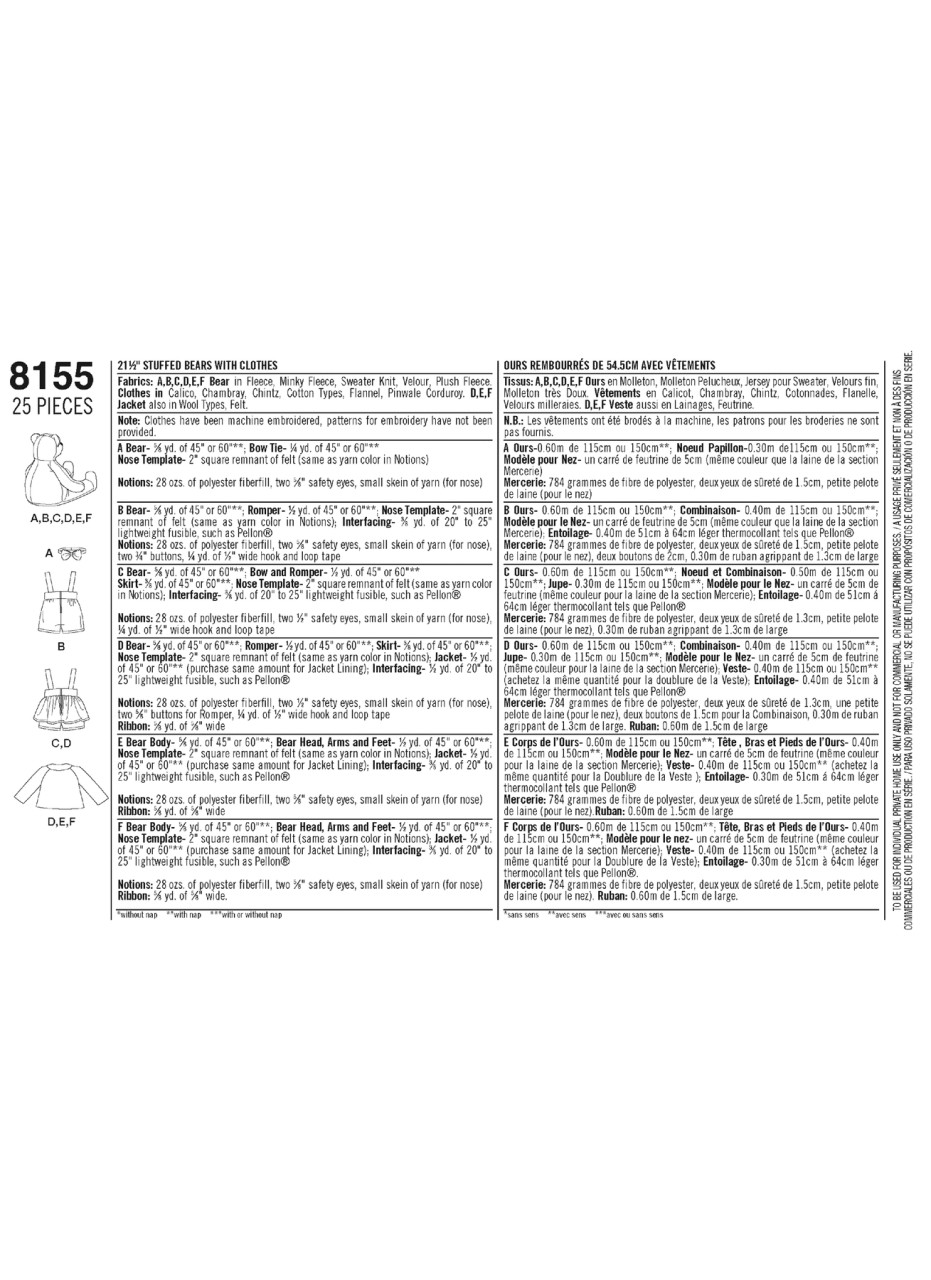 Stuffed Bears w/Clothes in Simplicity (S8155)