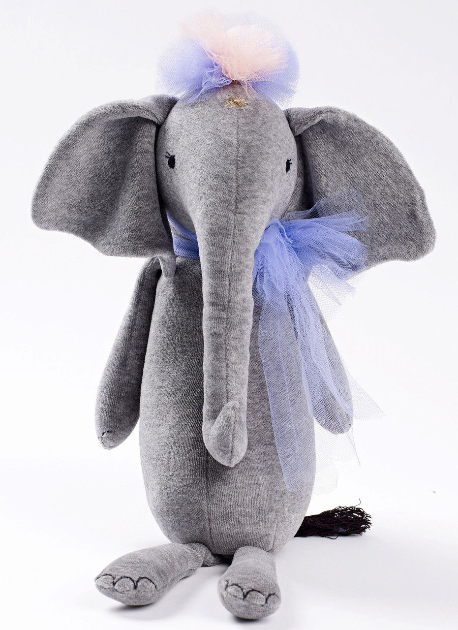 A new take on stuffed animals – the swan with a crown and veil or the elephant with a tulle bow and dangling legs. So cute! Both are delightful to give as a gift or to keep.