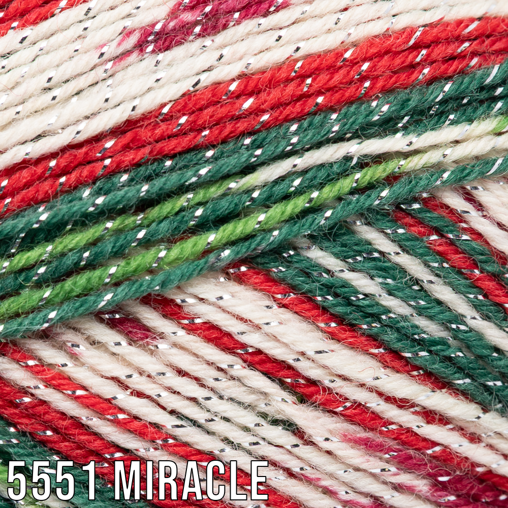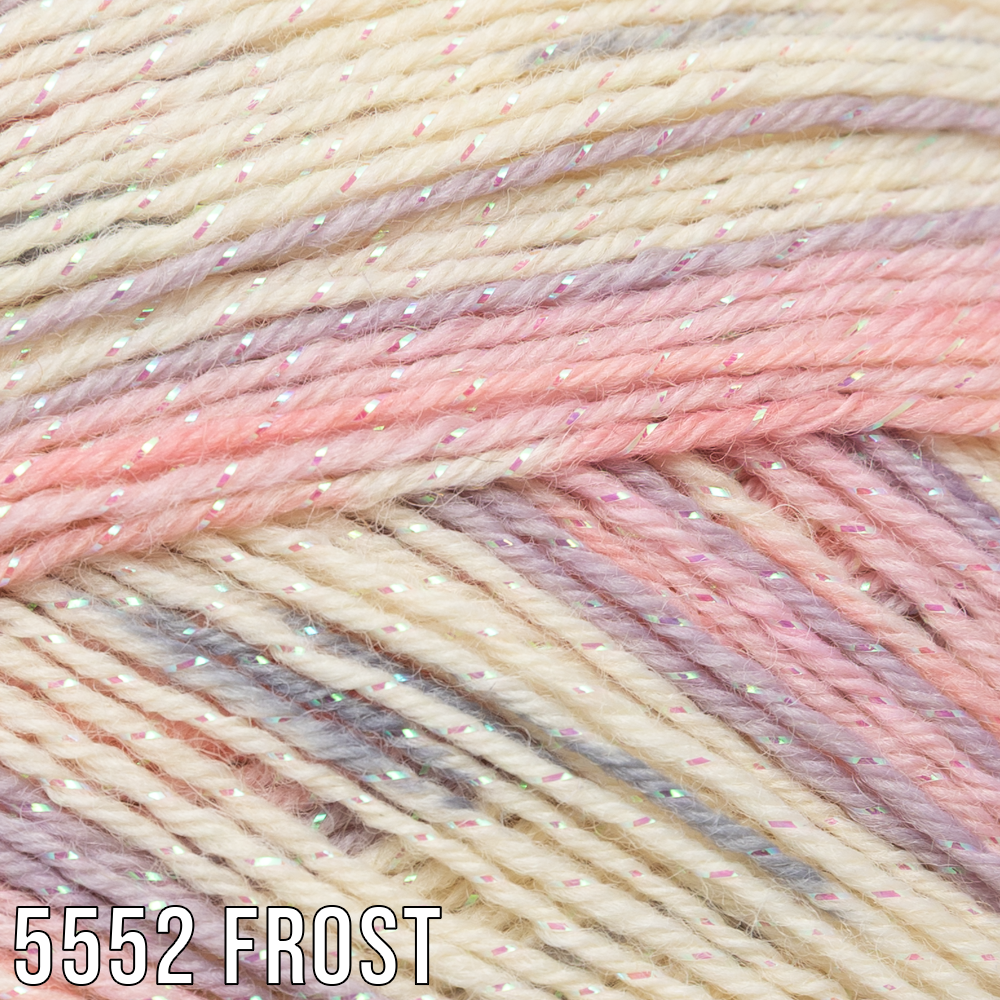 A dazzling Christmas yarn that showcases shades from traditional reds and greens to frosty blues and pinks.