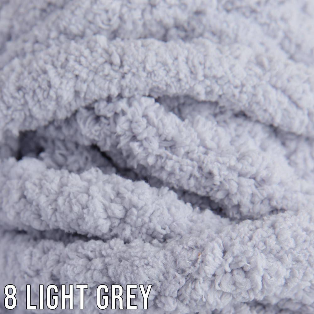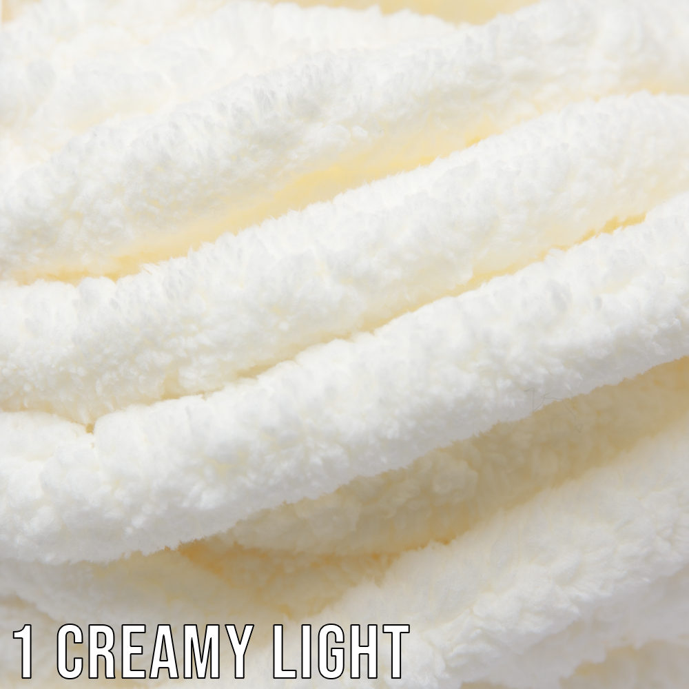 This super bulky chenille yarn is irresistibly soft and fluffy and you’ll fall in love with it at first touch! It’s perfect for creating cosy, warm pieces like chunky jackets, blankets, throws, bedspreads, and decorative pillows.