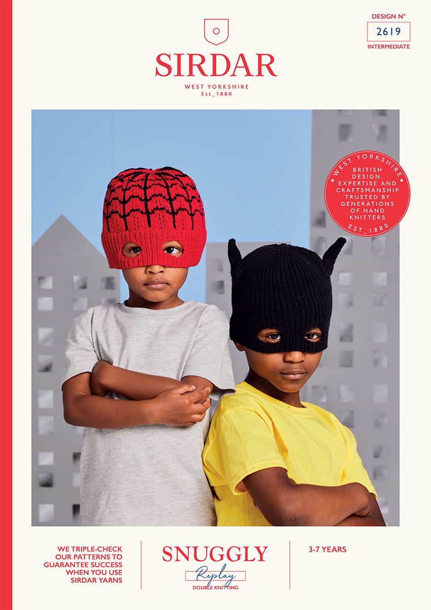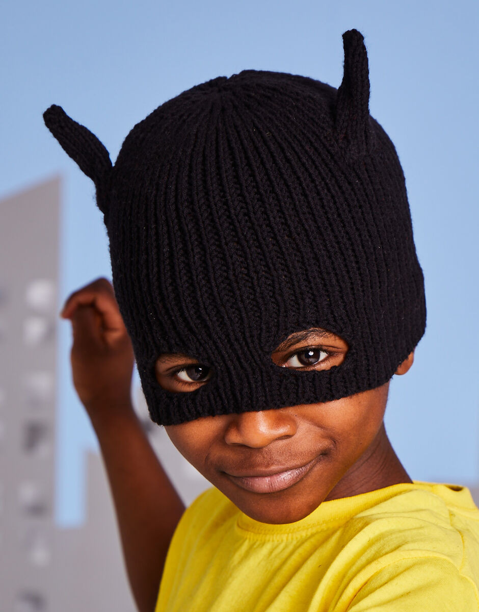 Even the most everyday outfit can be transformed into super hero daywear with a Super Hero hat. This knitting pattern features designs for a knitted hat with bat ears and one with a Fair Isle web. Each can we worn folded back as a regular beanie hat or folded down to create a super hero mask should villains appear!