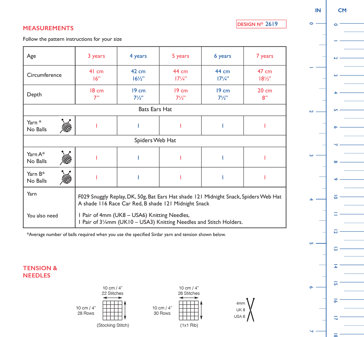 1 Pair of 4mm (UK8 – USA6) Knitting Needles, 1 Pair of 3¼mm (UK10 – USA3) Knitting Needles and Stitch Holders.