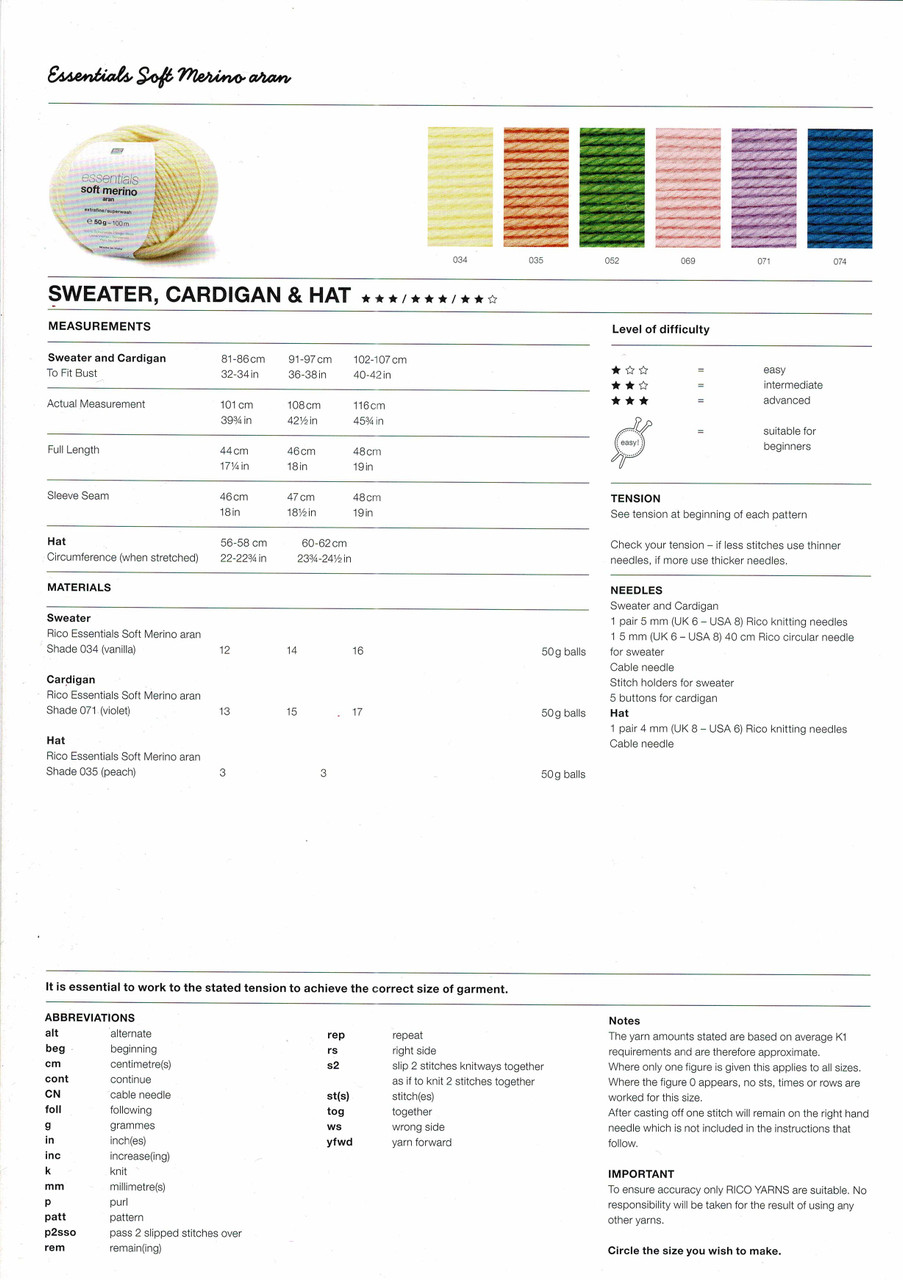 Sweater, Cardigan & Hat in Rico Essentials Soft Merino Aran (1046)