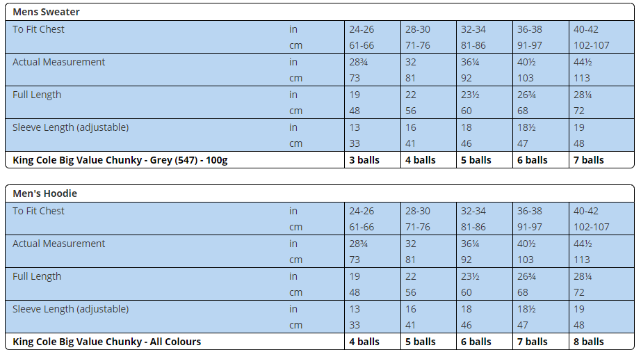 Description Shipping & Returns Reviews Description Mens and boys sweaters in king cole chunky. Shipping & Returns Reviews