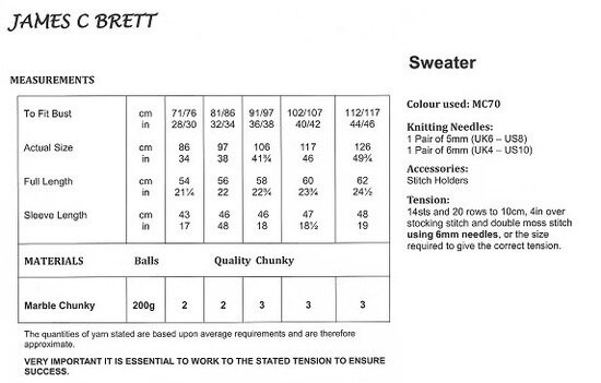 - Needles Required: 6.00mm & 5.00mm knitting needles.