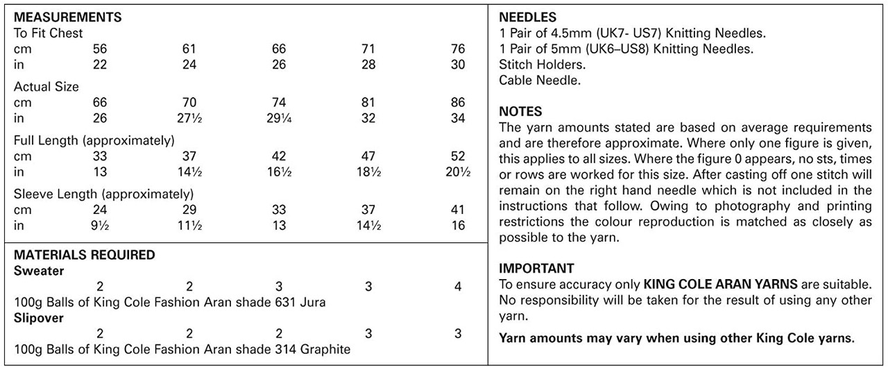 Sweater & Slipover in King Cole Fashion Aran (5346)