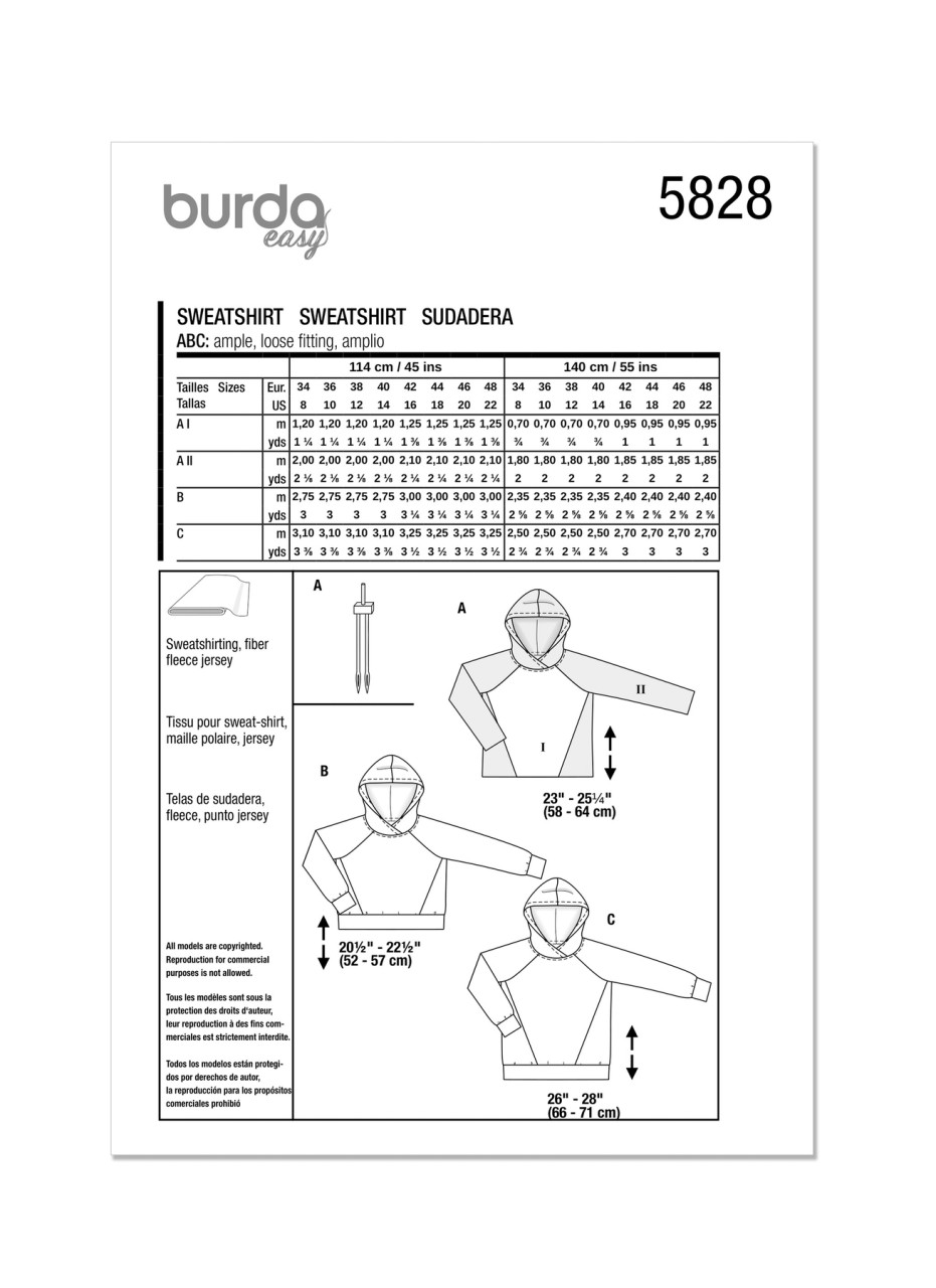 Sweatshirt Hoodie w/Contrast Sleeve in Burda Misses' (5828)