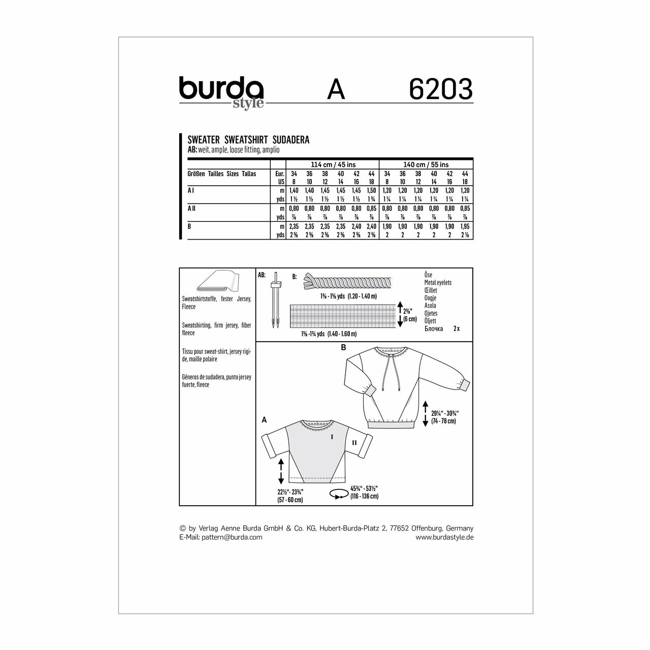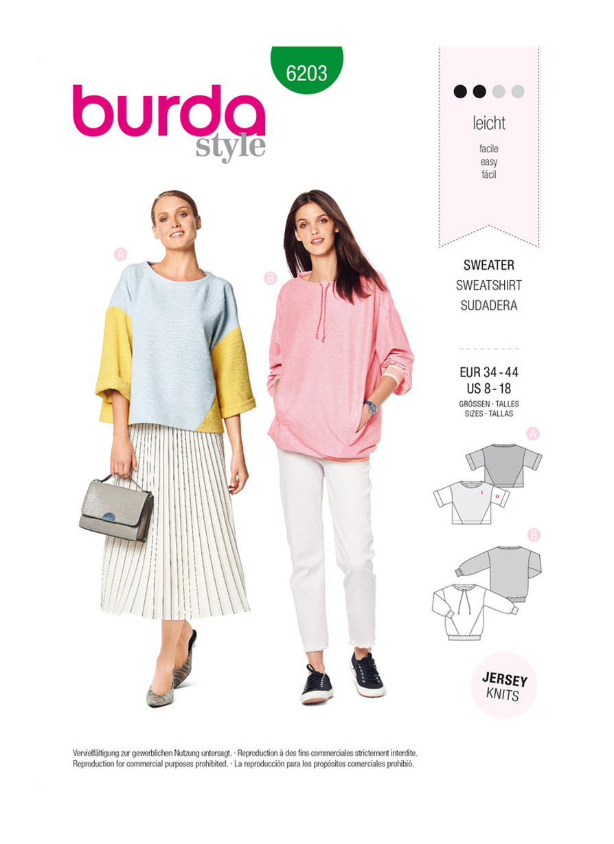 Sweatshirts w/Variations in Burda Misses' (6203)