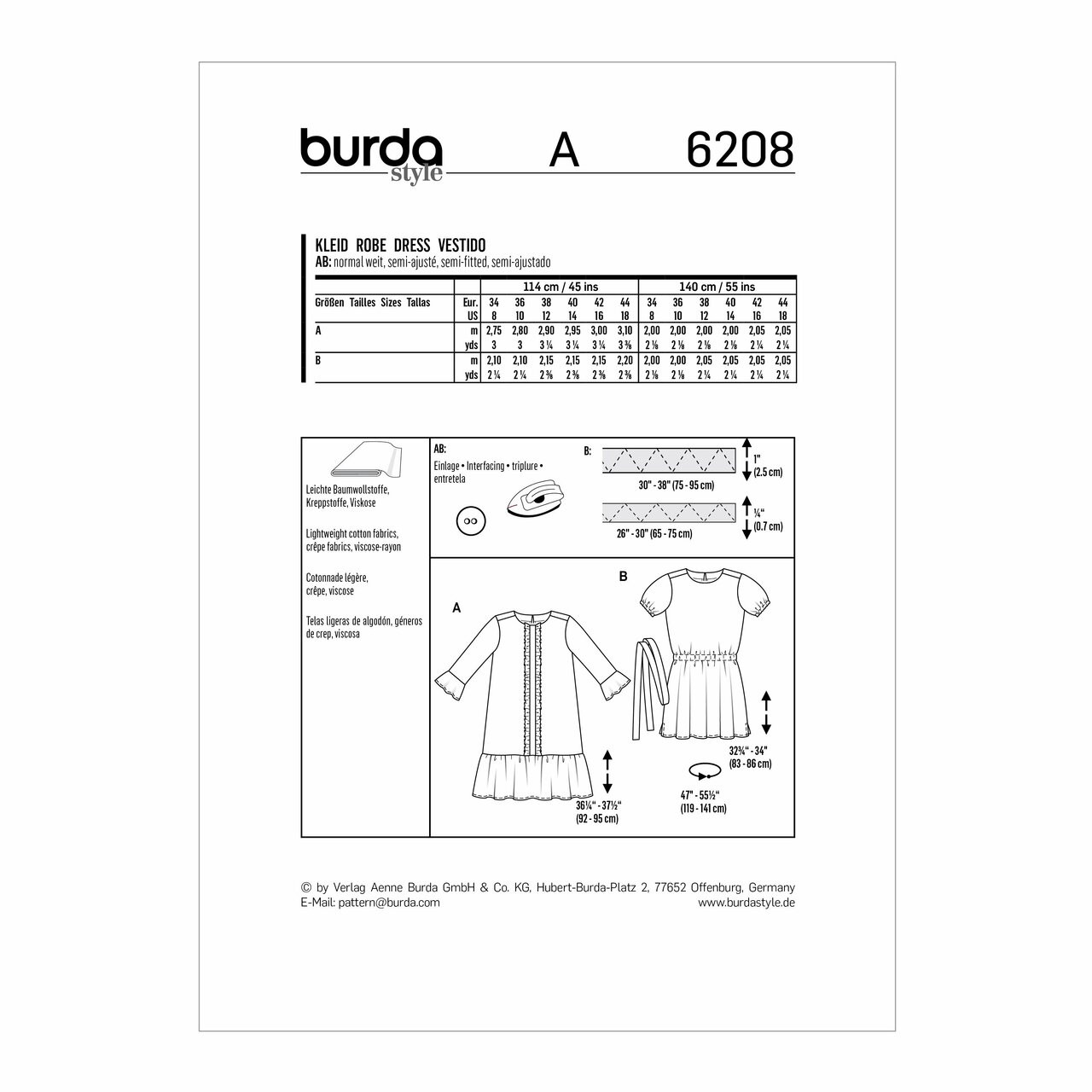 T-Shirt Dress & Dress w/Peplum Hem in Burda Misses' (6208)