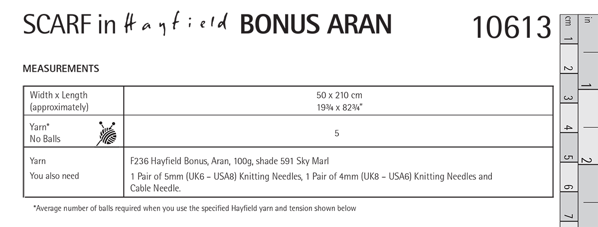 1 Pair of 5mm (UK6 – USA8) Knitting Needles, 1 Pair of 4mm (UK8 – USA6) Knitting Needles and Cable Needle.