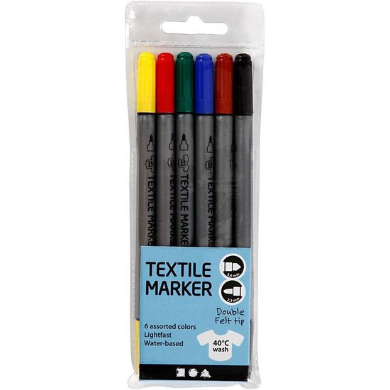 High quality, strong, permanent textile markers with double tip. After fixing with an iron - washable at 40°C.