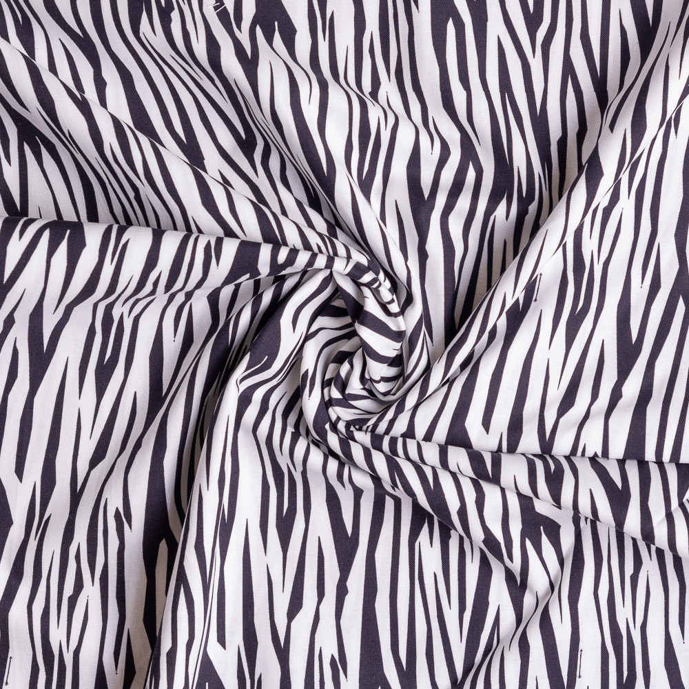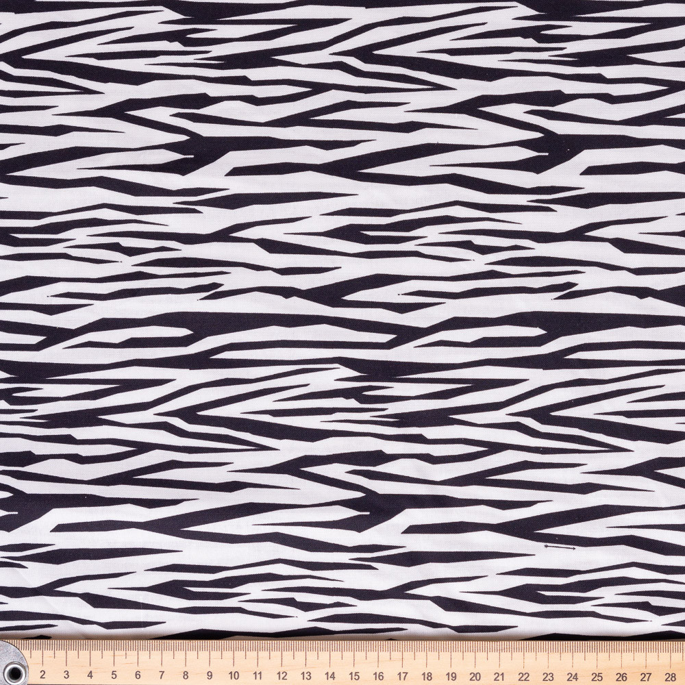 Part of the Tiger Tails collection. Black and white animal stripe pattern. Beautiful, high quality, printed cotton fabric. Ideal for quilting, masks, crafts, displays, table decoration and as a dressmaking fabric.