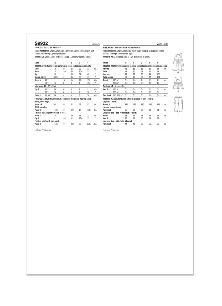 Toddler's Dress, Top & Pants in Simplicity Kids (S9932)