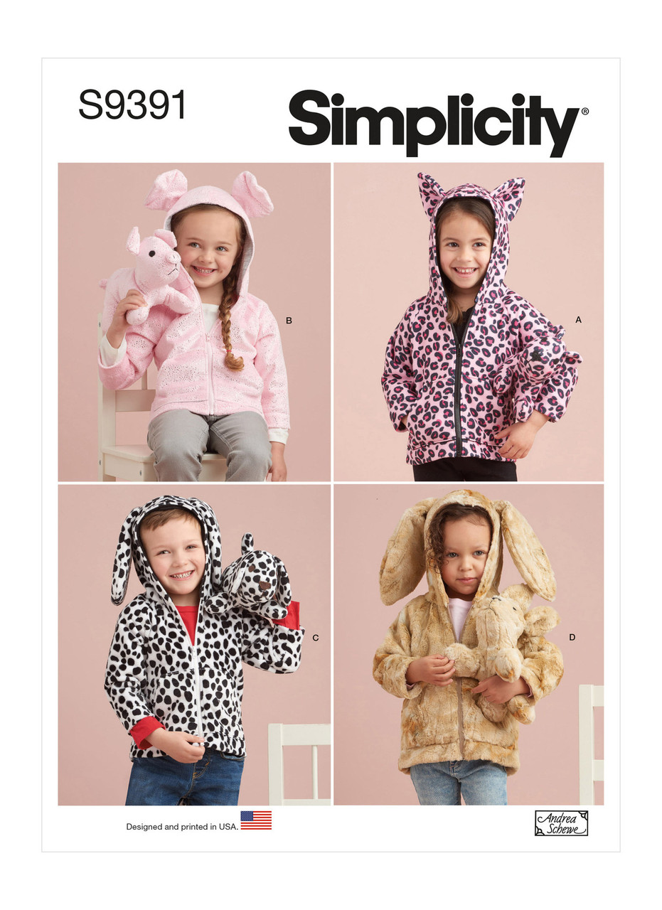 Toddler's Jackets & Small Plush Animals in Simplicity Kids (S9391)