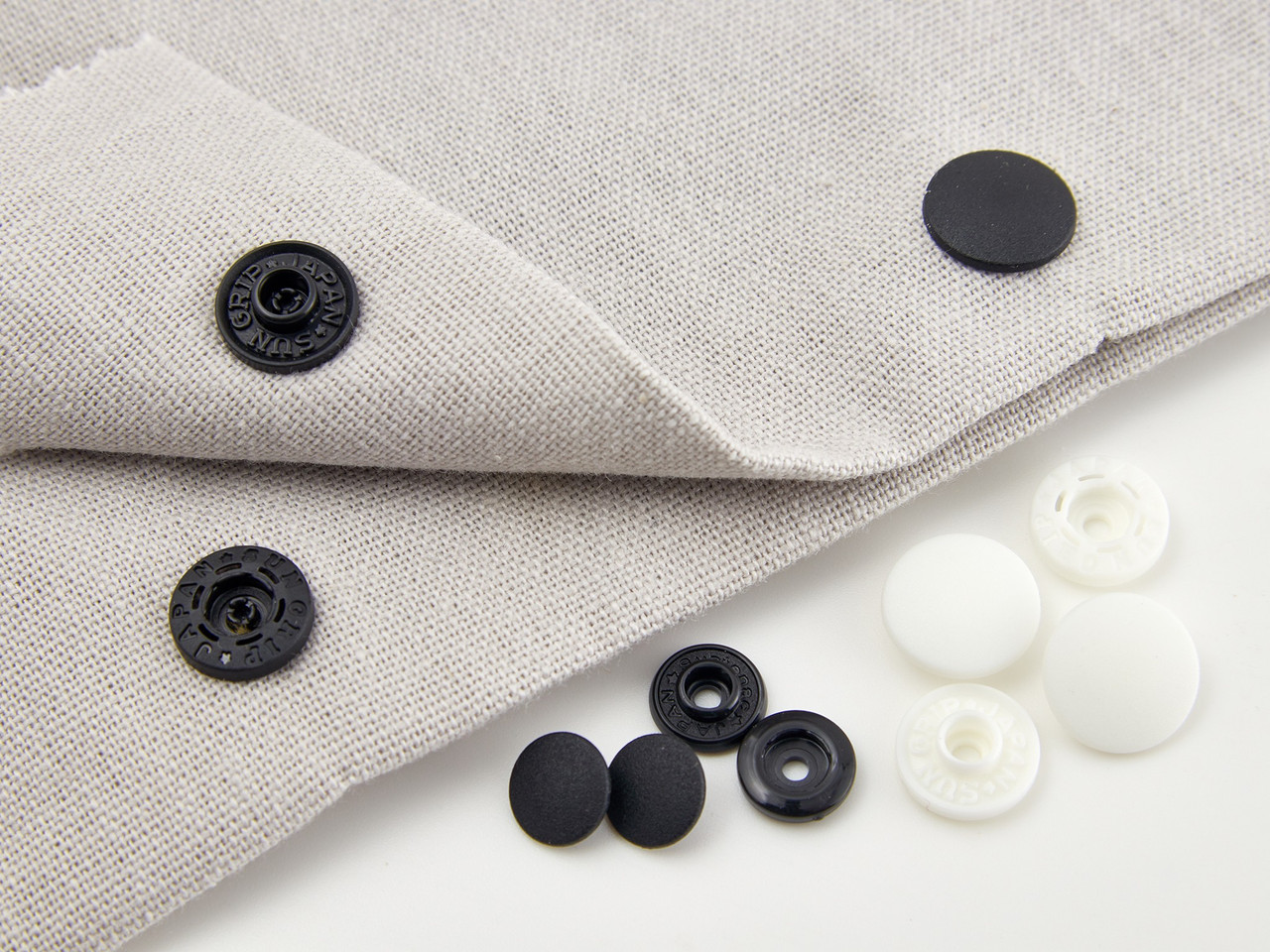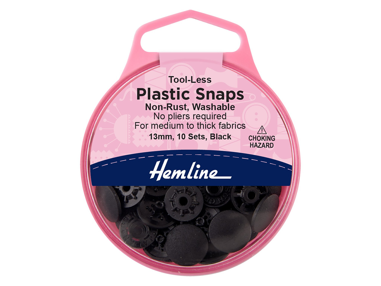 Non-rust, durable, colour fast and lightweight snaps. Best for medium to heavier weight fabrics. No pliers required for these snaps, simply punch hole in fabric and insert prong, then place socket over the prong and snap both sides together. Repeat this process for the stud side with easy to follow instructions. Washable at 40 degrees, close the snap before washing.