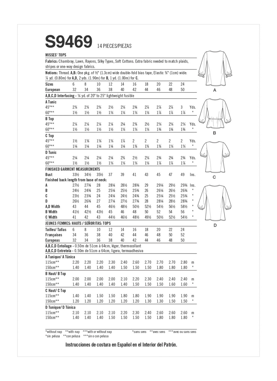 Pullover tops in tunic or hip lengths feature V-shaped and cut out necklines with self ties. Three-quarter and elbow length sleeves gather to elastic.… Read More