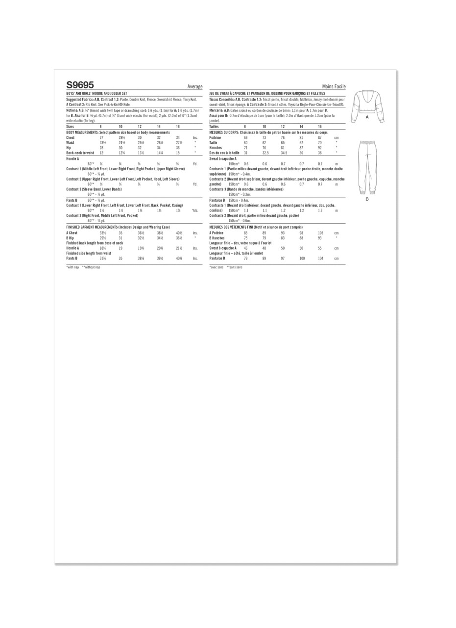 Colorblock hoodie includes rib knit cuffs and waist, kangaroo pocket, and purchased drawstring. Jogger pants feature elastic at waist, side seam pockets, faux stitched fly detail at front, and ankle elastics.