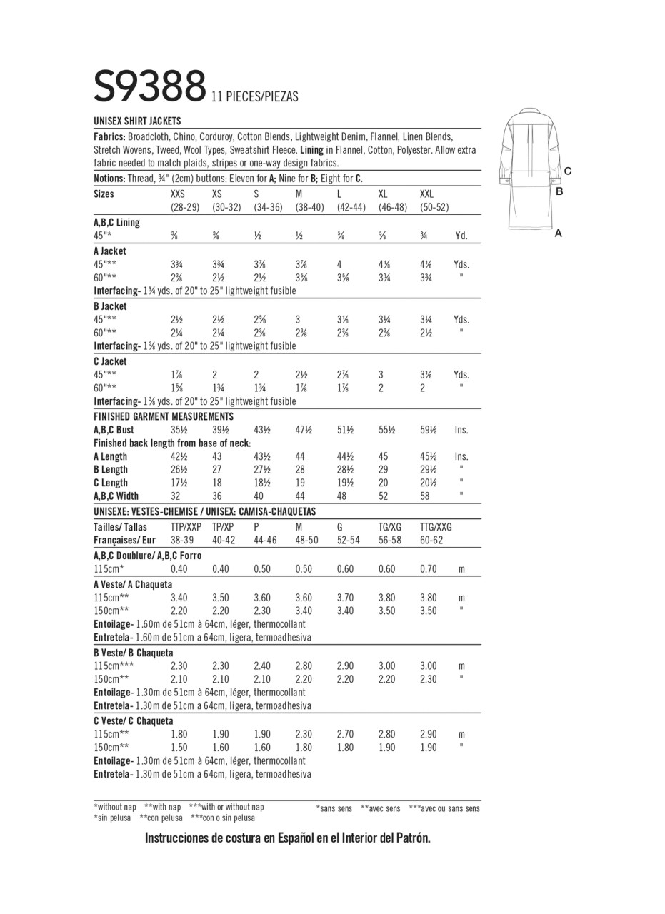 Button front jackets with yoke, front patch pockets and side seam pockets. Long sleeves, button cuffs with pleats. Back yoke with pleat. Lined yokes and sleeves.
