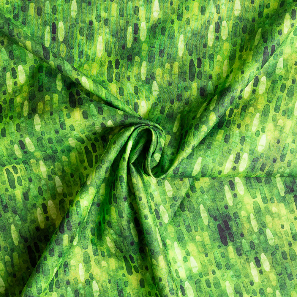 Part of the Urban Jungle collection. Abstract watercolour effect on a batik style background in tones of green. Beautiful, high quality, printed cotton fabric. Ideal for quilting, masks, crafts, displays, table decoration and as a dressmaking fabric.