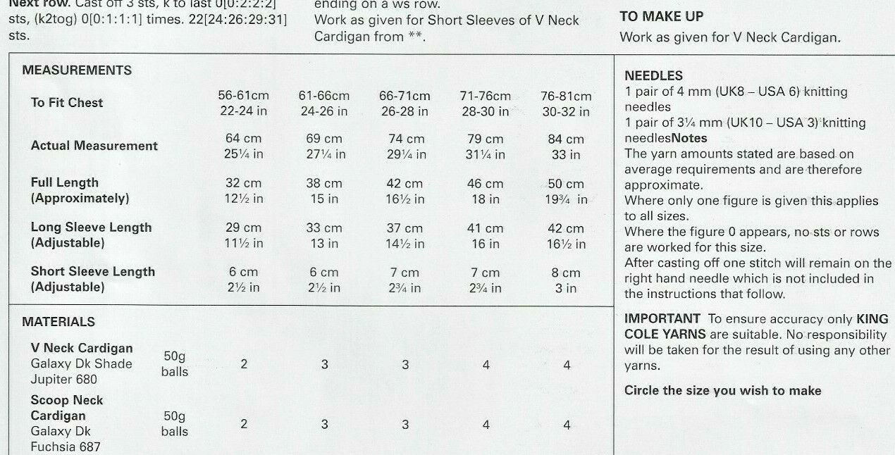 Knitting pattern for a Girls V Neck Cardigan and Scoop Neck Cardigan, made with King Cole Galaxy 50g balls, Galaxy DK is a wool blend yarn with added sequins for a touch of glamour.