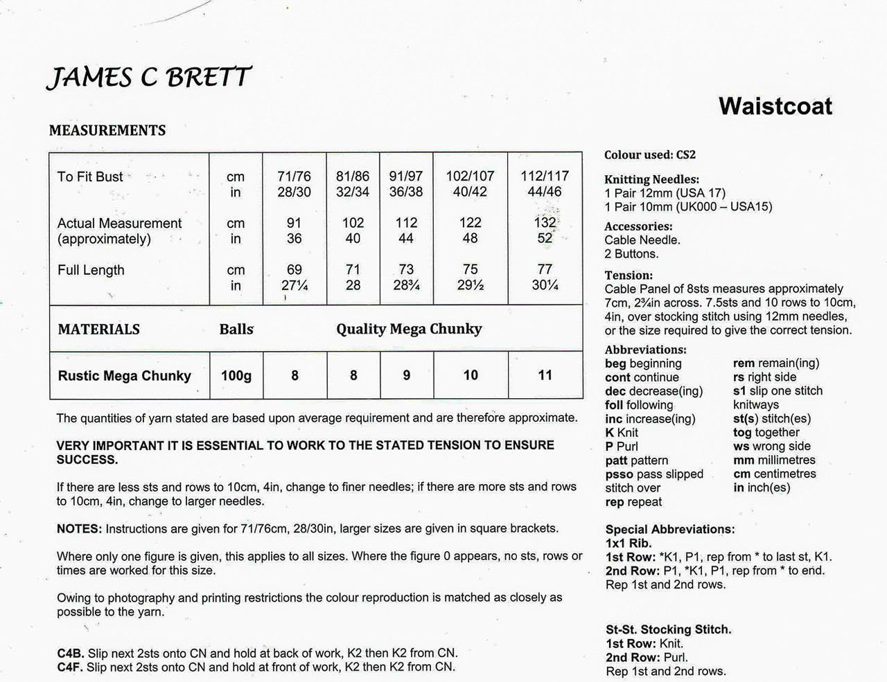 Waistcoat in James C. Brett Mega Chunky (JB118)