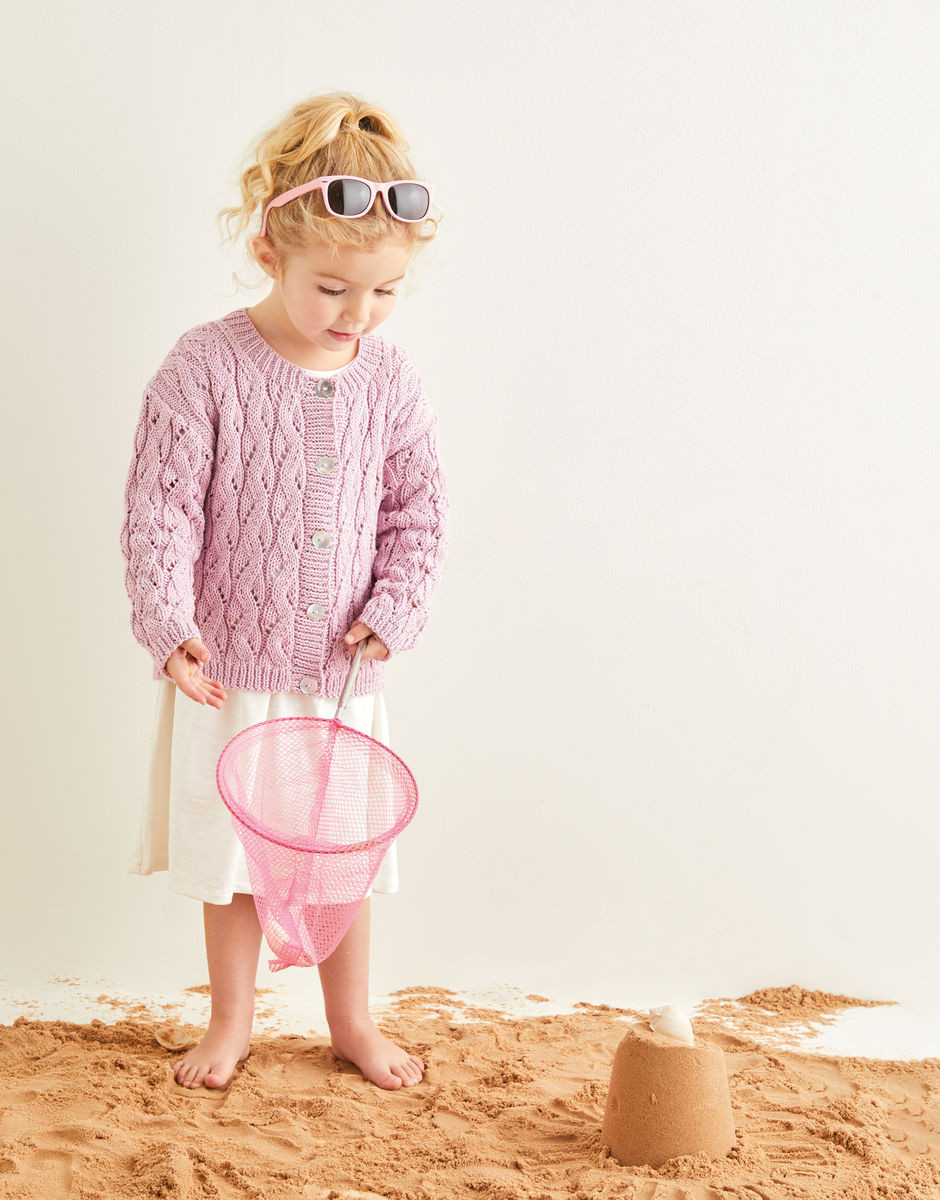 Featuring a wave lace stitch inspired by the sun glinting on a calm sea, these cardigans in Snuggly 100% Cotton DK are perfect for popping over summer dresses when you can’t rely on all-day sunshine. Hello British summer. Style with jelly shoes and a sun hat. And maybe an ice cream.
