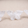Beautiful lace trim with a butterfly design in white. Use it for hemming sleeves, dresses, or necklines. You can also apply it to home decor applications such as couch finishing, drapery details, etc.