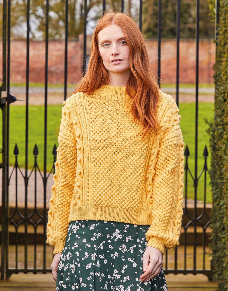So easy to style yet designed with so much detail, this trinity stitch cable sweater is the perfect transeasonal piece. Its wide neck and rolled back neckband promises to flatter while the bobble detail leaves a beautiful finish. We'll be wearing ours now and through winter with everything from jeans to leather skirts.