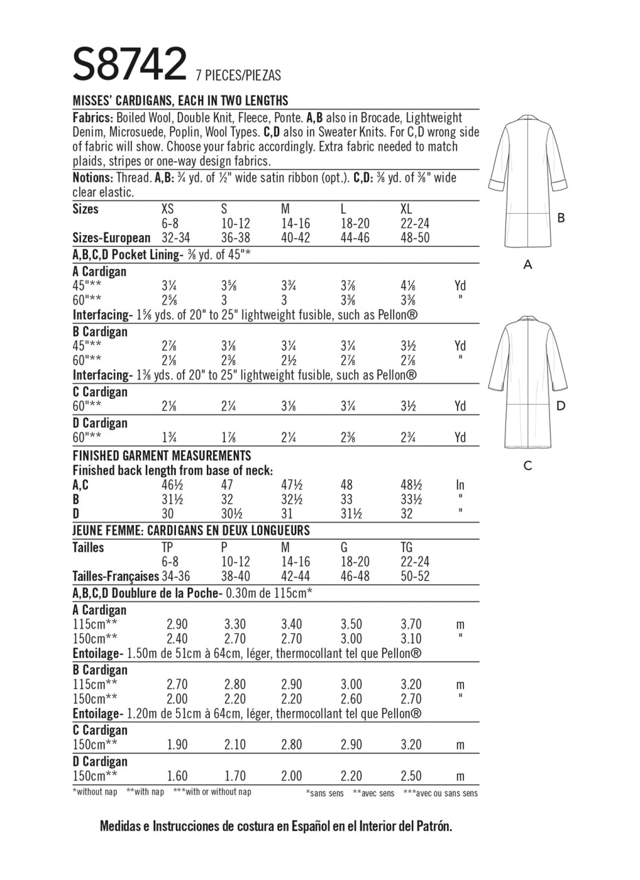 This customizable two length cardigan is the perfect piece to dress any outfit up or down. Suggested fabrics like wool, fleece, and micro suede allow you to achieve that relaxed yet put together look. Keep it simple and sleek with a straight lapel, or add some flare with a cascading one for an effortless ensemble. American Sewing Guild for Simplicity.