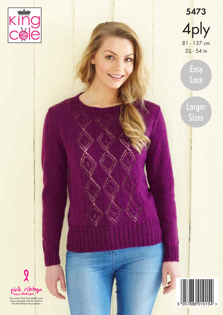 Women's easy lace design cardigan and sweater made using King Cole 4ply yarn, making them perfect for the spring or summer weather.
