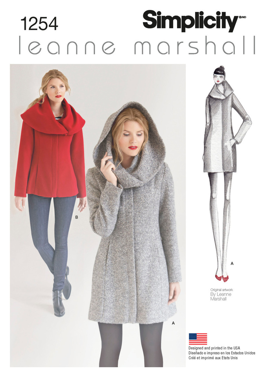 This Easy-to-Sew lined coat or jacket from Leanne Marshall is sure to be a hit. Over sizes collar can be worn like a shawl or a hood for extra warmth and great winter style. Leanne Marshall for Simplicity.