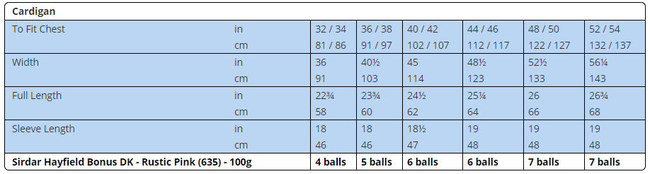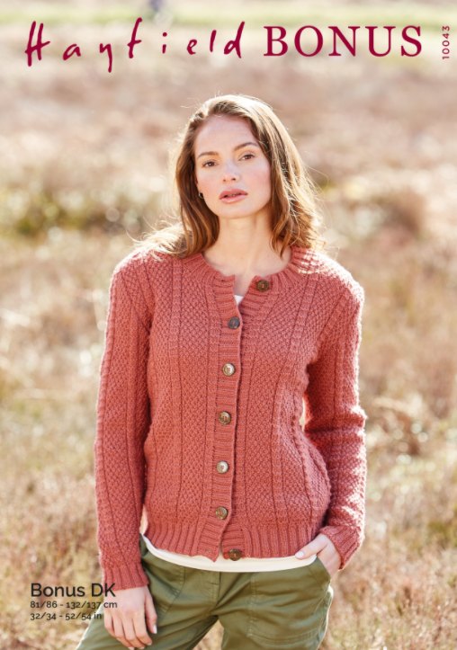 Add some warmth to your wardrobe with this stunning texture knit cardigan with rib trims and button fastening using our Hayfield Bonus Double Knitting yarn. This pattern includes instructions to suit sizes from UK 8-26 (US 4-22).