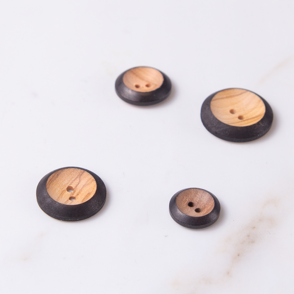 Round two-hole button, perfect for blazers and coats. Made with olivewood.