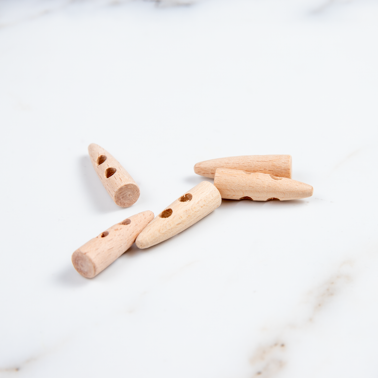 Wooden button of natural color is a good complement to winter coats or sweaters. Its shape will certainly deliver. It is made of hardwood and has quality of processing. Size of button is 6 mm (on the wider edge of 10 mm) x 40 mm. Diameter of holes is 5mm. We do not recommend washing the buttons.