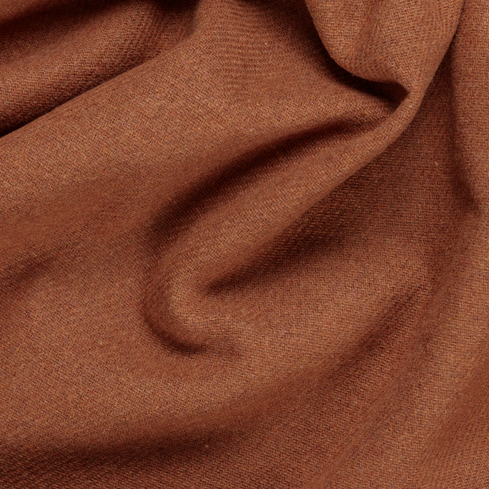 A rich wool-blend woven twill in warm ginger brown, combining acrylic, polyester, and wool for a luxurious mid- to heavyweight fabric. The slightly felted interior adds softness and tactile warmth, while the fully opaque finish and structured drape make it perfect for winter tailoring.