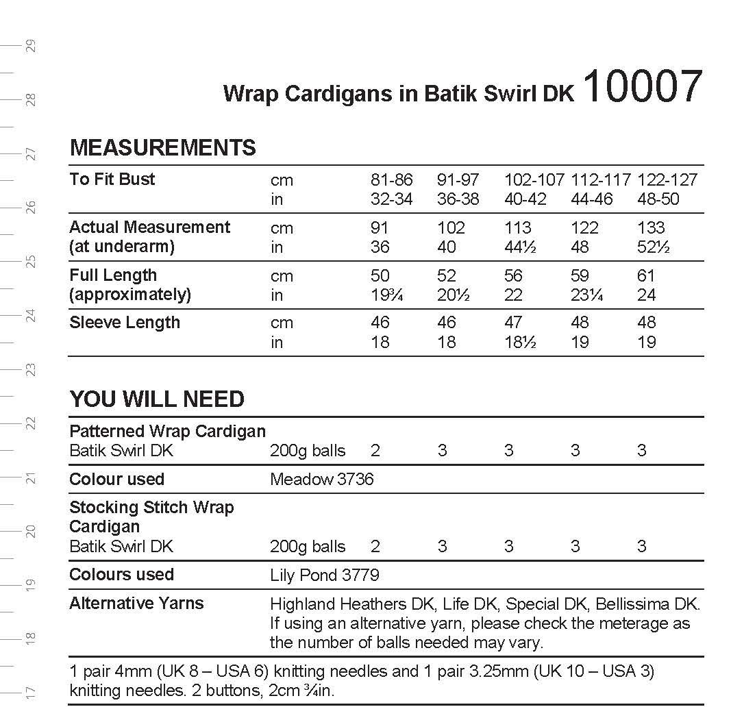 1 pair 4mm (UK 8 – USA 6) knitting needles and 1 pair 3.25mm (UK 10 – USA 3) knitting needles. 2 buttons, 2cm ¾in.