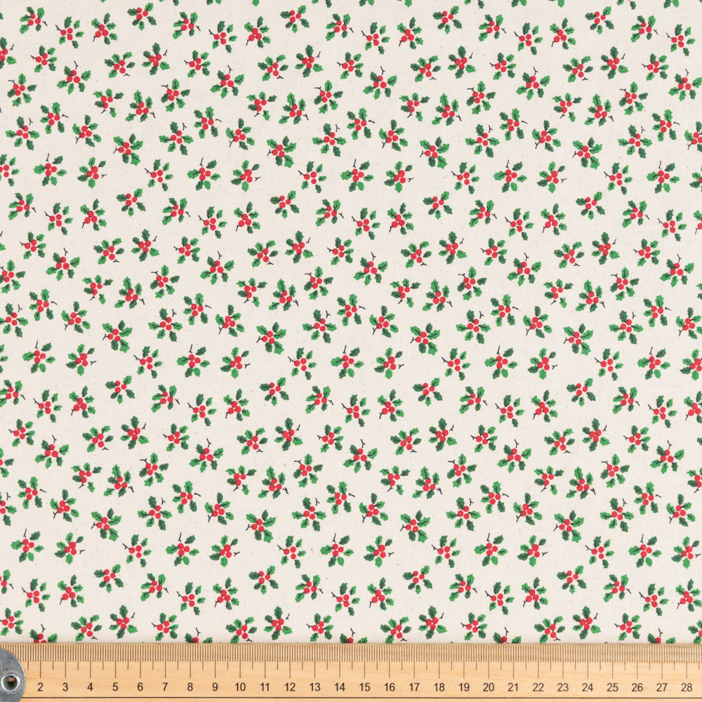 Xmas Scandi: Holly on Ivory - 100% Cotton