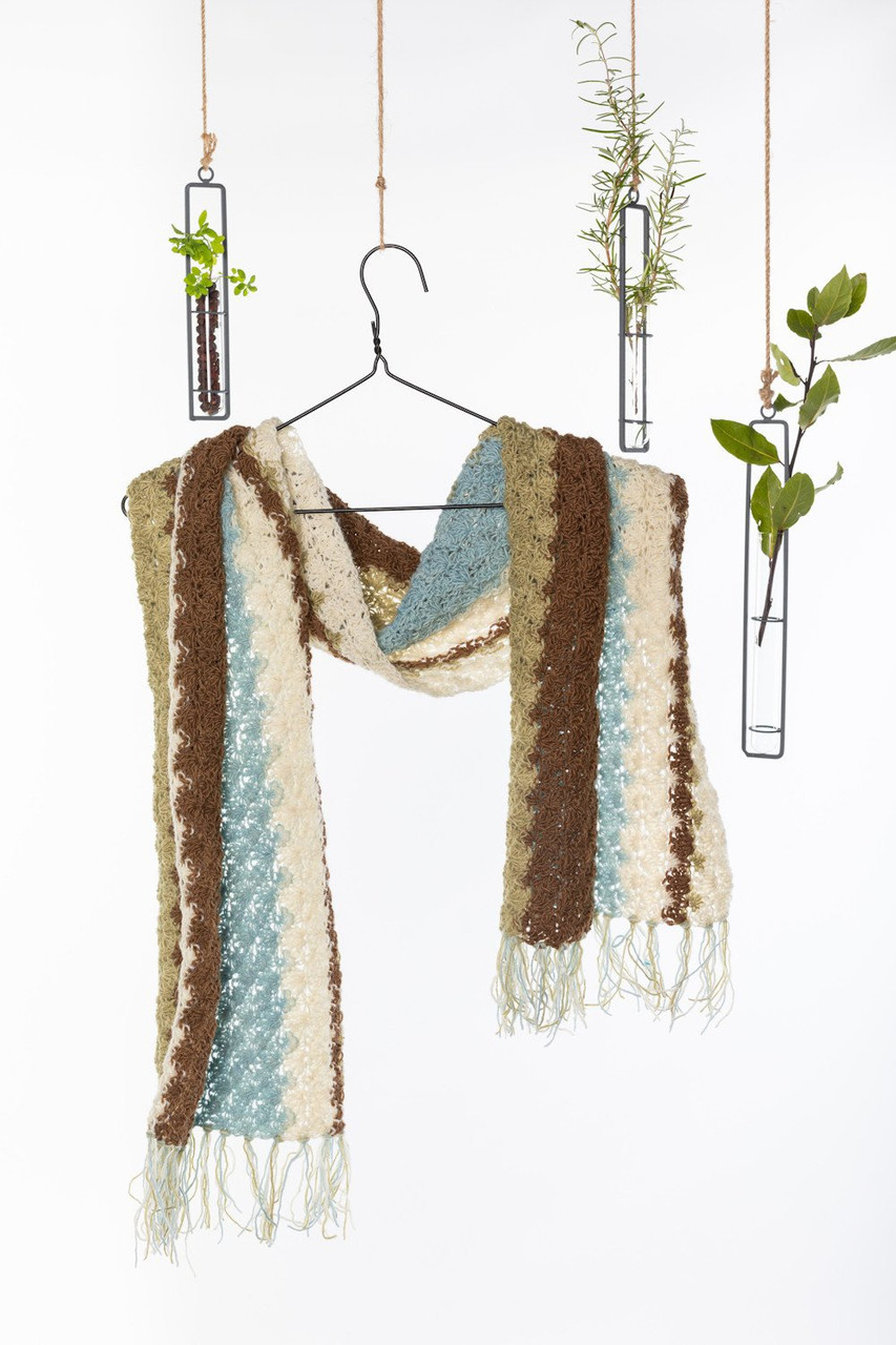 This pattern uses two packs of Hedgerow but this pattern can be easily adapted to make the shawl larger by adding repeats of the pattern and an extra Hedgerow pack. This design is great for novice crocheters as the pattern is repeated and we have also included image instructions for additional help and support. This is a fun, enjoyable project that will crochet up quickly. It features basic stitches such as the single and double crochet as well as a cluster stitch.