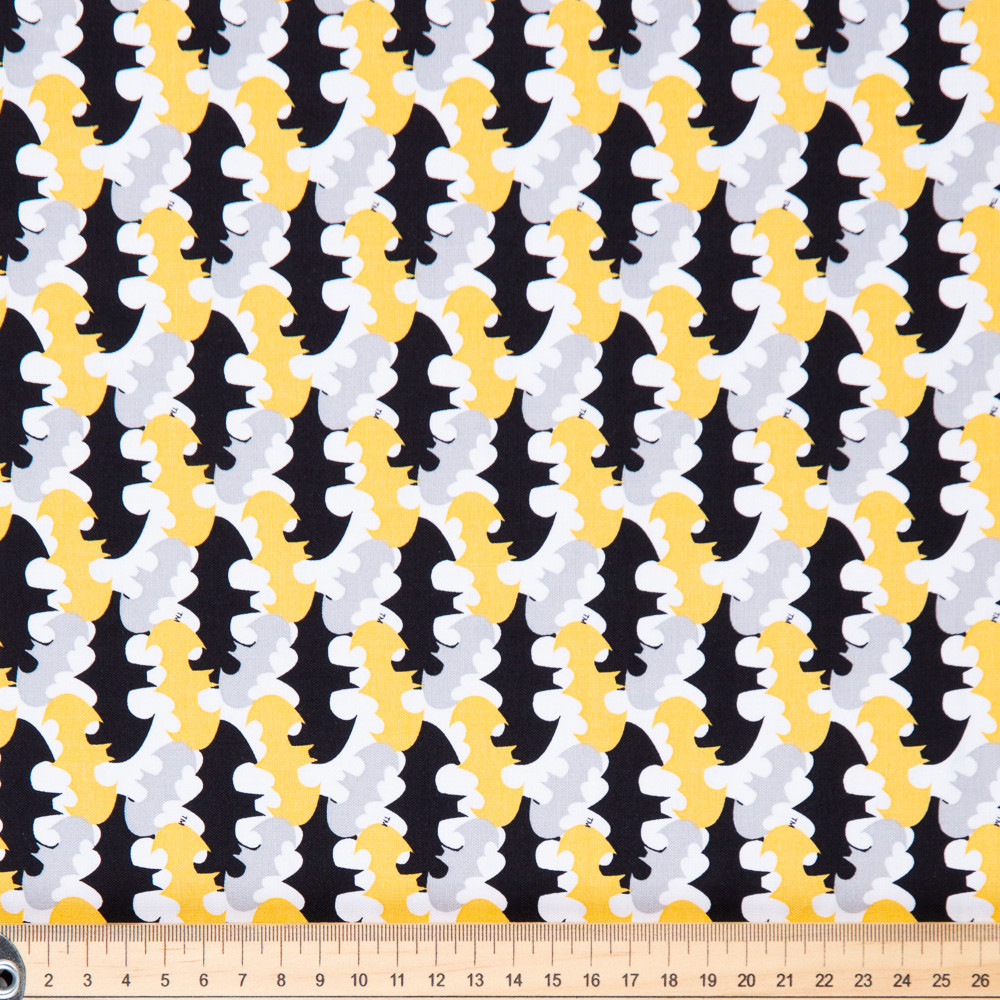 Black, white and yellow batman logos. Beautiful, high quality, printed cotton fabric. Ideal for quilting, masks, crafts, displays, table decoration and as a dressmaking fabric.