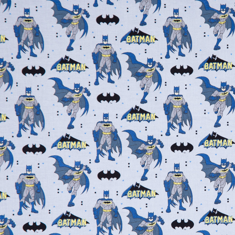 Batman on a grey background. Beautiful, high quality, printed cotton fabric. Ideal for quilting, masks, crafts, displays, table decoration and as a dressmaking fabric.